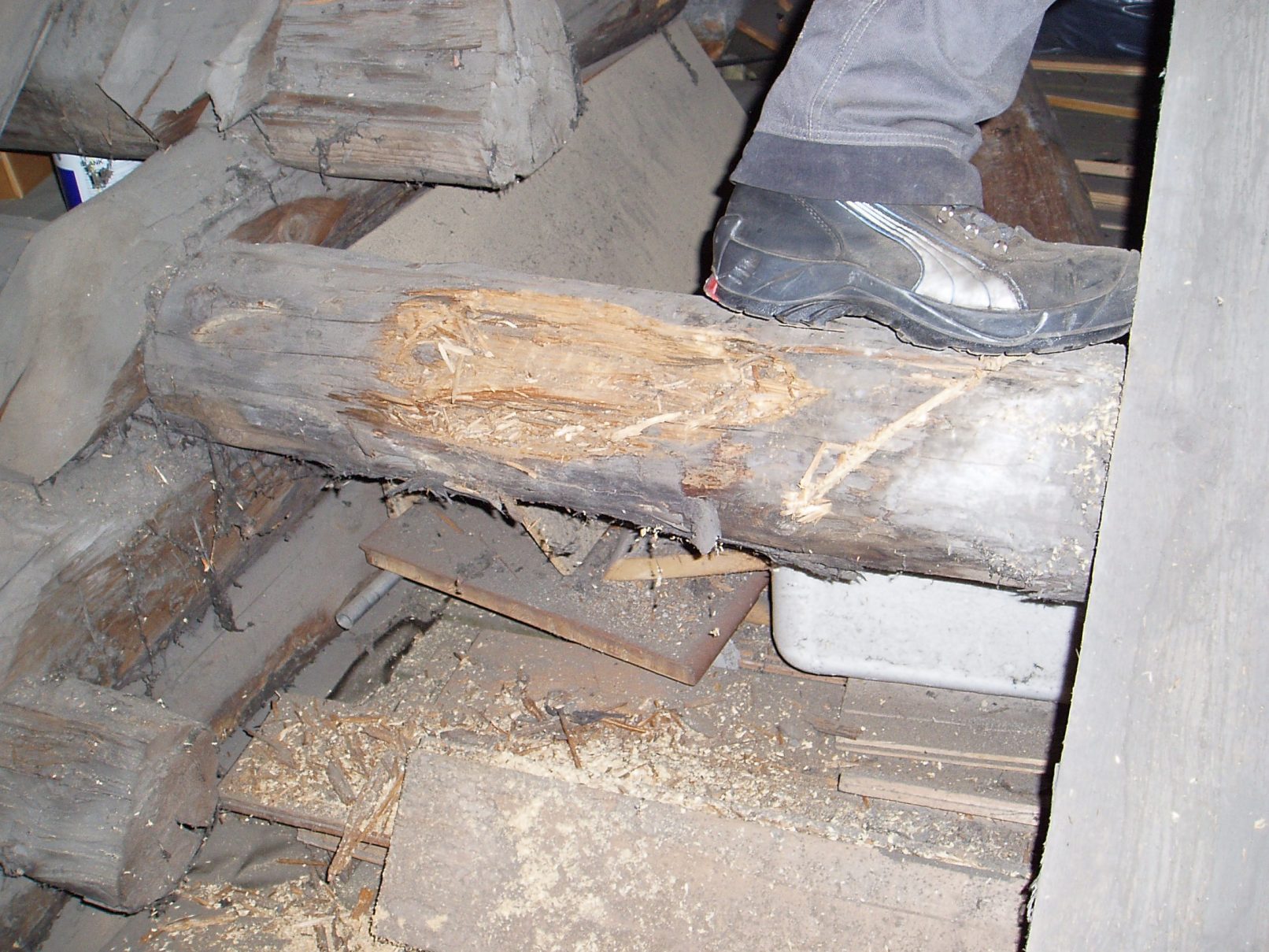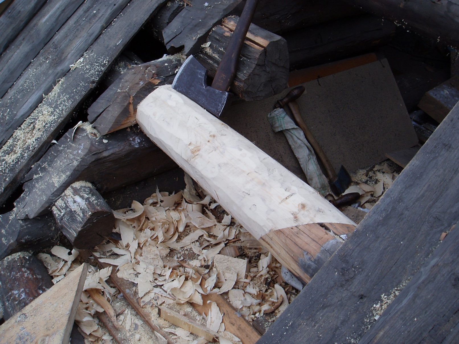 På Vækerøstuene skifta vi ut råttent treverk i en takås ved å benytte oss av spunsing.