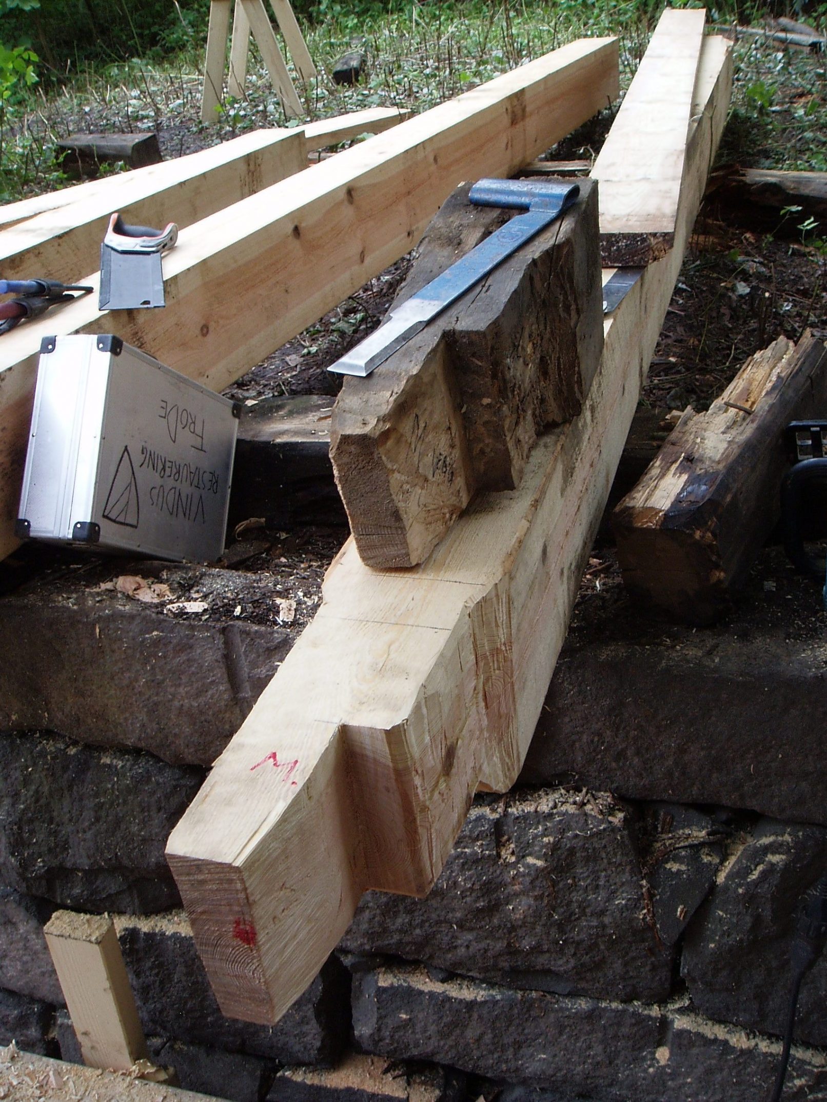 På Vøivenvolden gård ble vi bedt om å reparere en eldre låvebru. Ved nærmere ettersyn viste det seg at hele brua var råtten og ikke til å redde, så i samråd med Fortidsminneforeningen, vår kunde, valgte vi å bygge en helt ny låvebru ved hjelp av tradisjonelle teknikker.