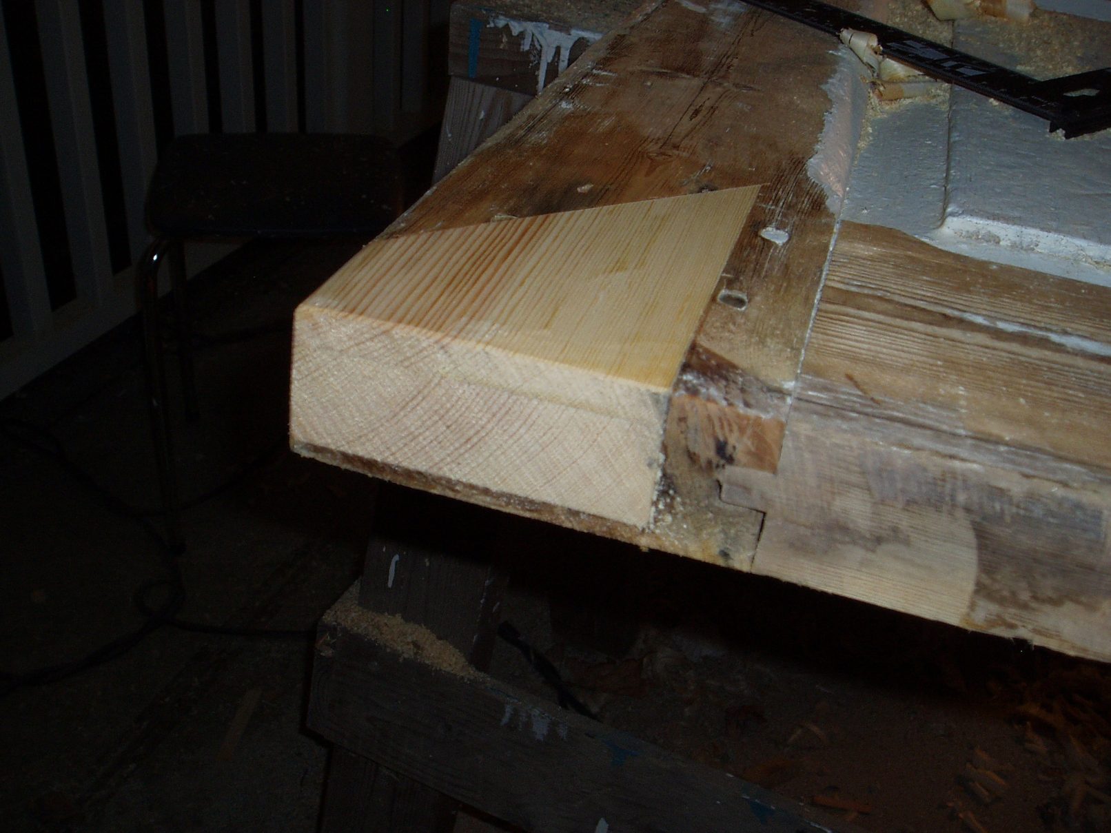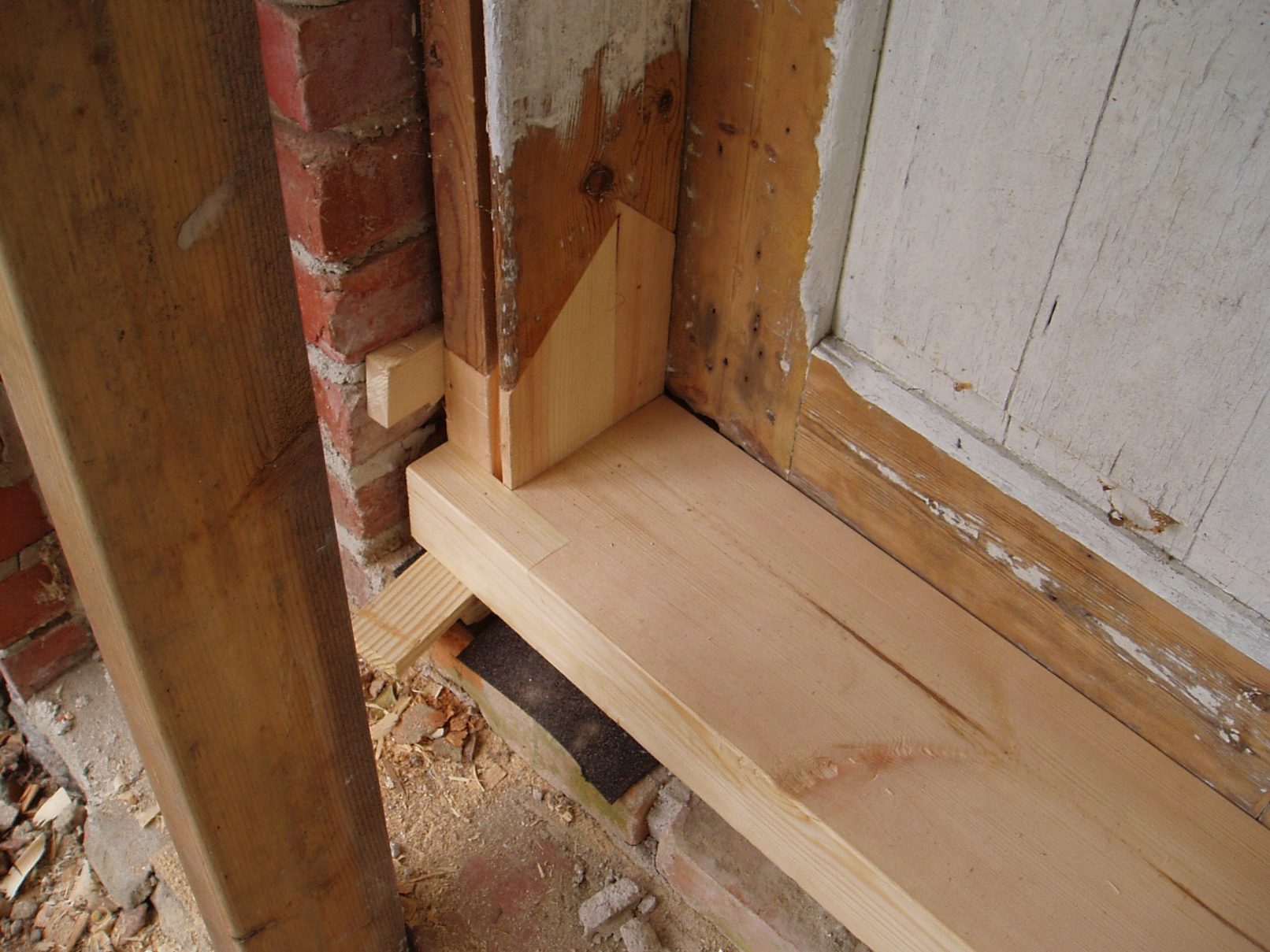 På denne jobben byttet vi ut noen råtne elementer i en dør og spunset inn friskt treverk.